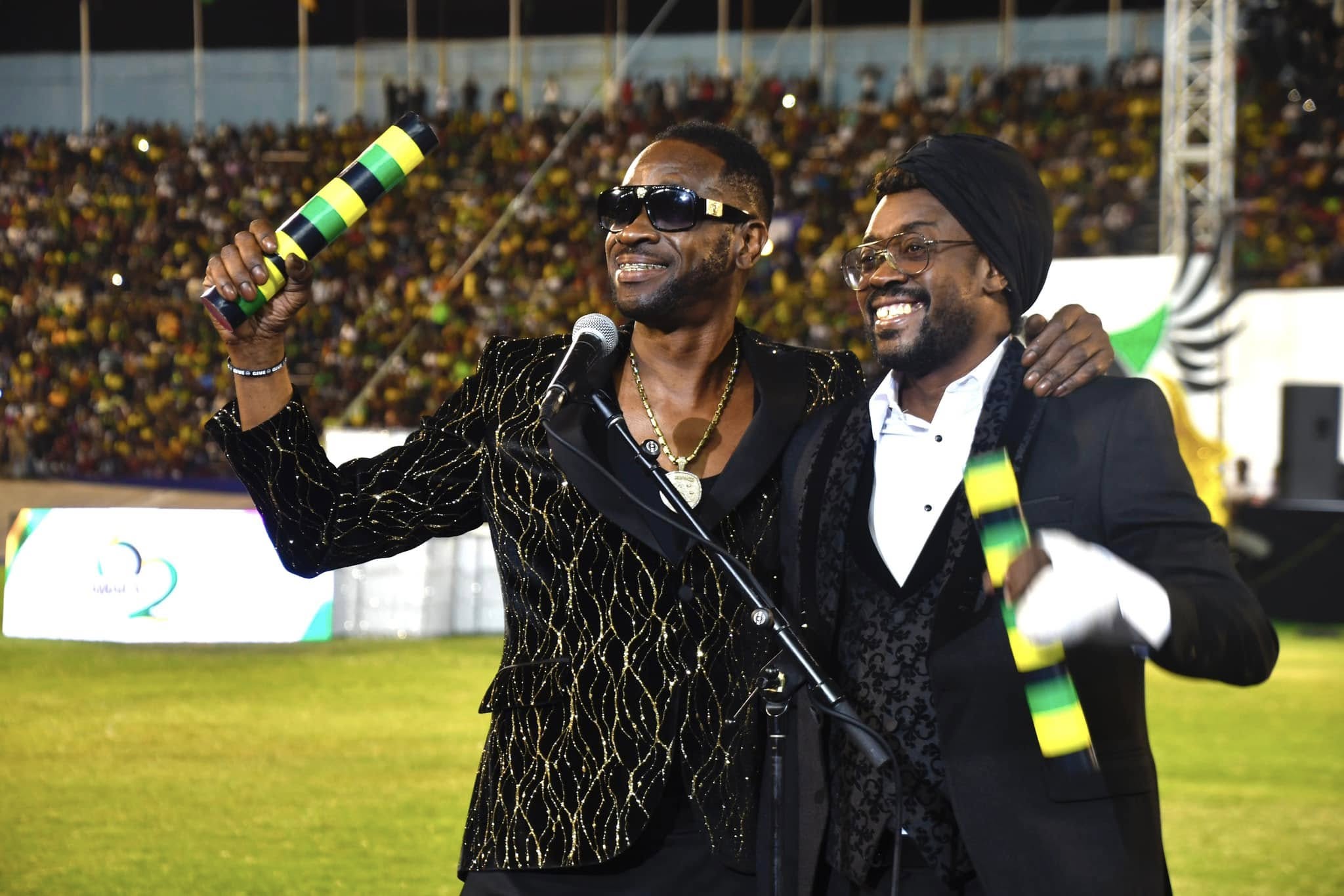 Dancehall icons Bounty Killer and Beenie Man share a proud moment after receiving their Reggae Icon Awards at the 2024 Independence Grand Gala.
